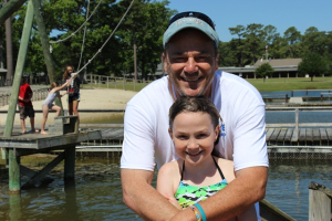 First thing the next morning, Tiger Lilly ran to the zip line. With a big smile, you could see her fear was gone. There was no debating this time, she was ready to go. Together, her and her dad flew down the line and into the water, laughing together the whole way.